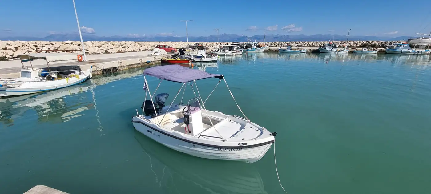 The Boat named IASONAS is the perfect choice for a relaxed and enjoyable boating experience, requiring no license to operate. With a length of 4.5 meters and a width of 1.8 meters, it comfortably accommodates up to 5 people, making it ideal for small groups or families. Powered by a 20HP Yamaha main engine and a 2.5HP Yamaha secondary engine, the Poseidon offers smooth handling and reliability on the water. The steering wheel with power trim ensures easy maneuvering, while the 25L fuel tank and an additional 25L emergency petrol tank provide peace of mind for your trip. Fuel is not included in the rental price, but VAT 24% is covered. Book your adventure today and set sail with confidence! 35 euro/hour Gasoline charged at the end